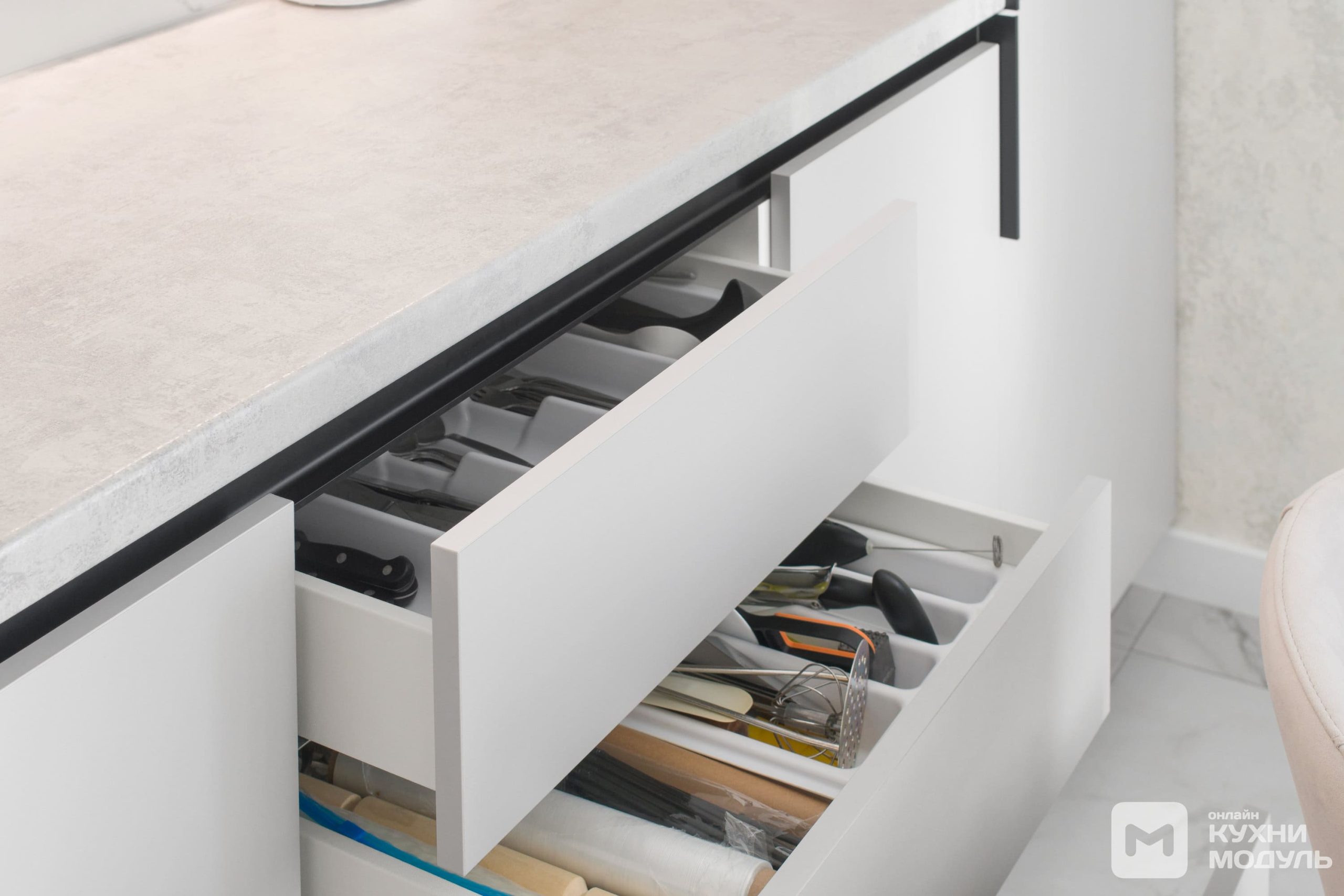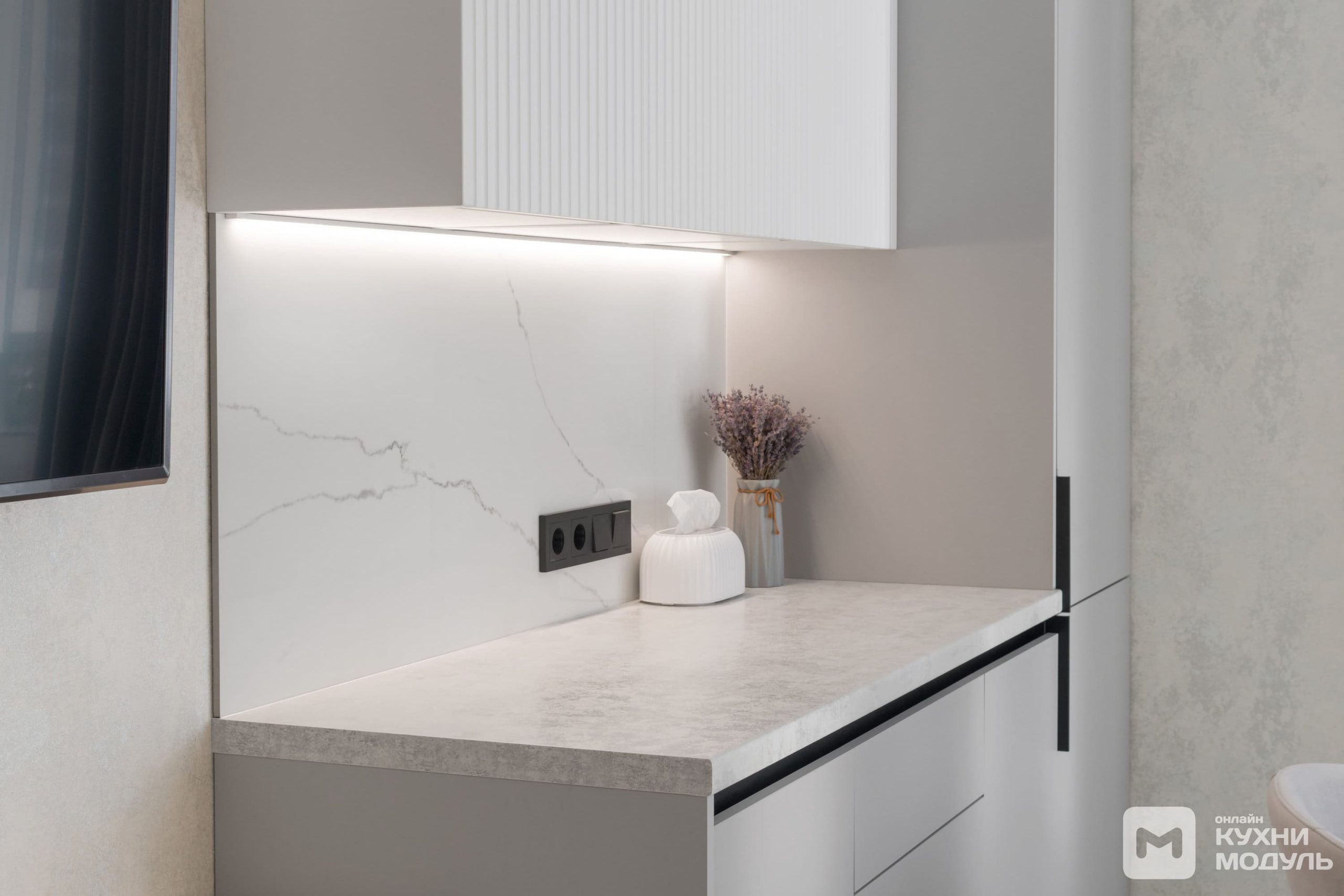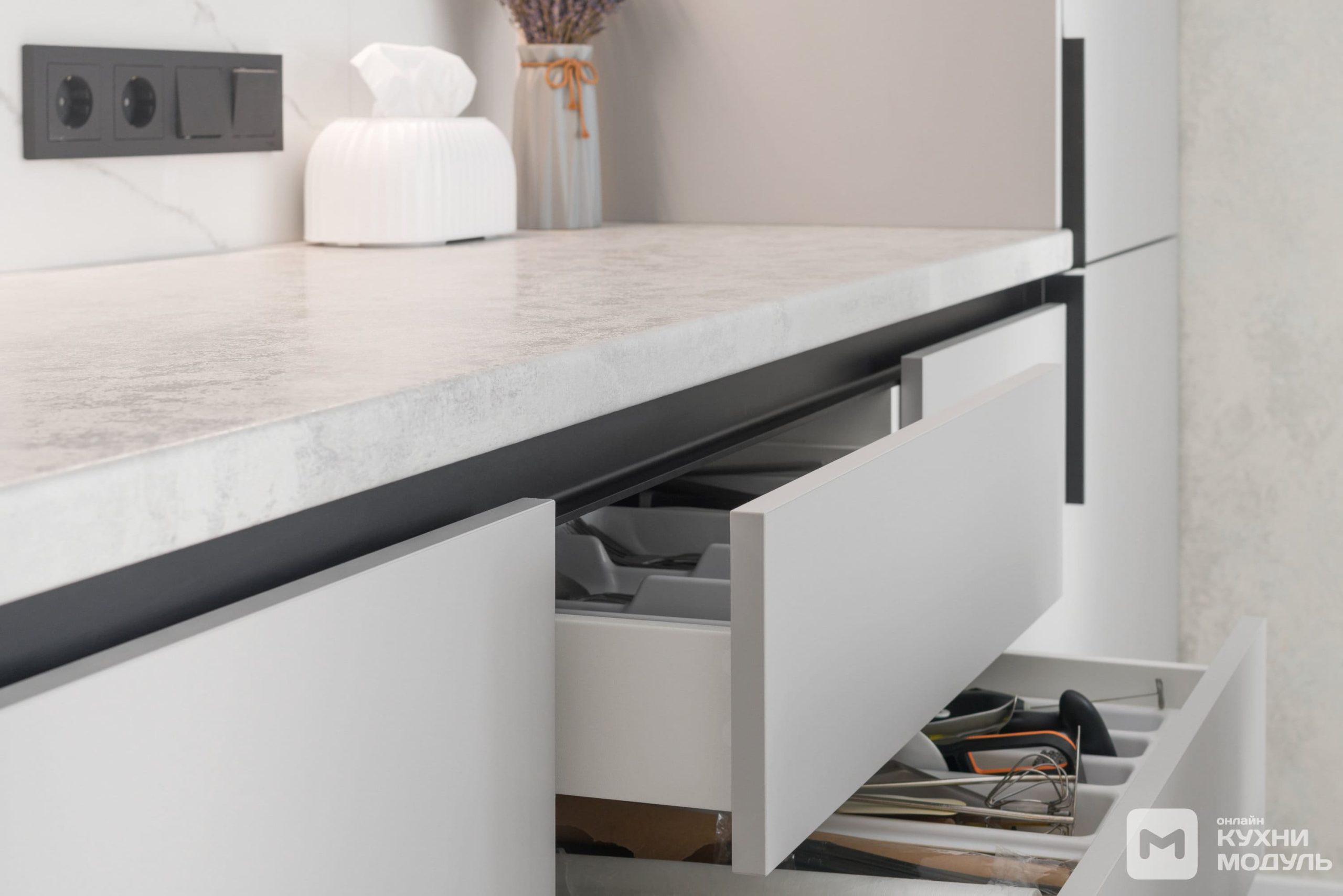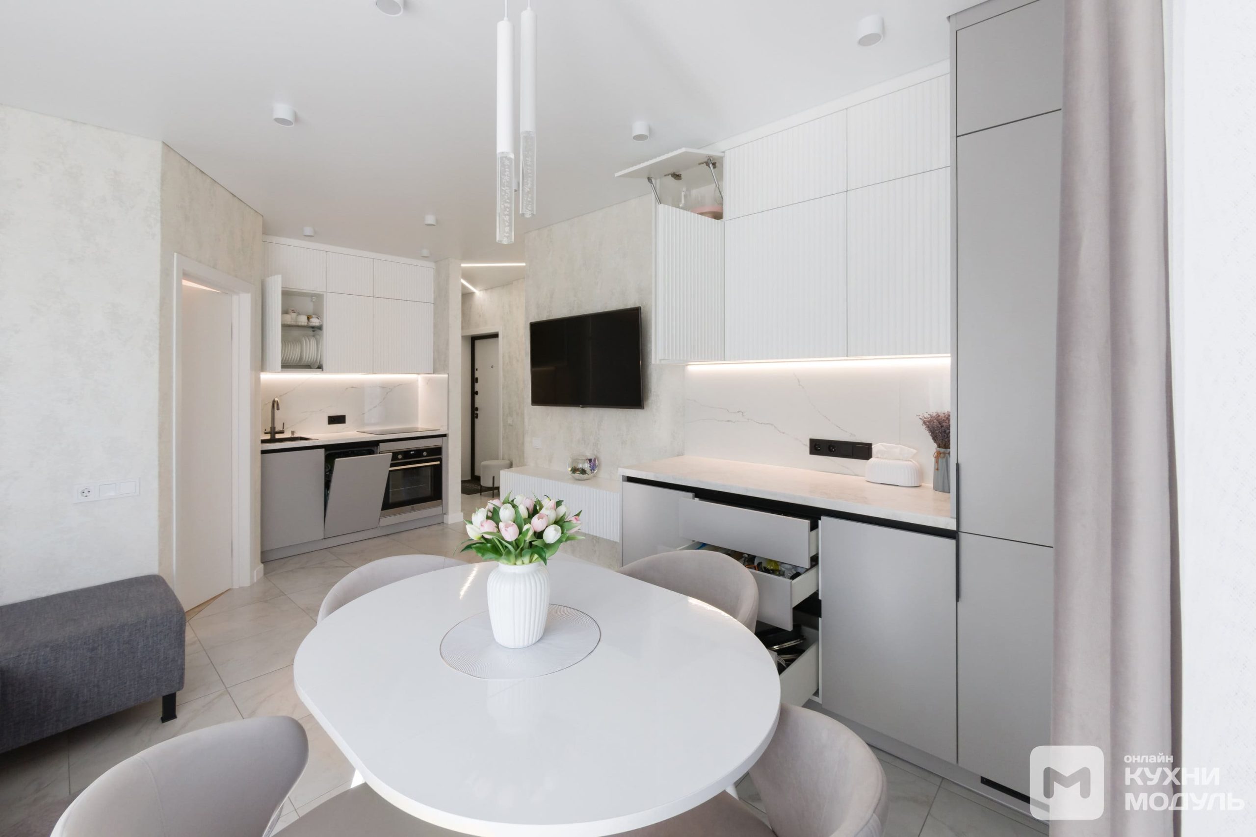 | Механизмы: | Петли Blum Clip Top Blumotion, Blum Modul, GTV, толкатель Maco Push-to-open, газлифт GTV, ящик выдвижной Quadro |